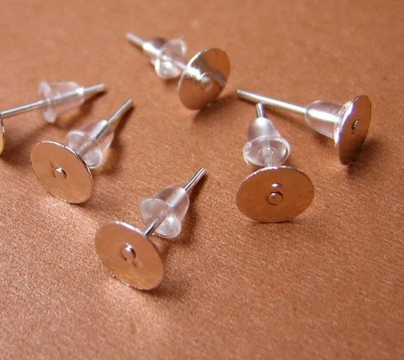 Description:earring post blank Wholesale Stud earring posts with rubber backs Stud Earrings Post and Rubber Backs Stoppers Earnuts 5mm Pads Cabochon Settings